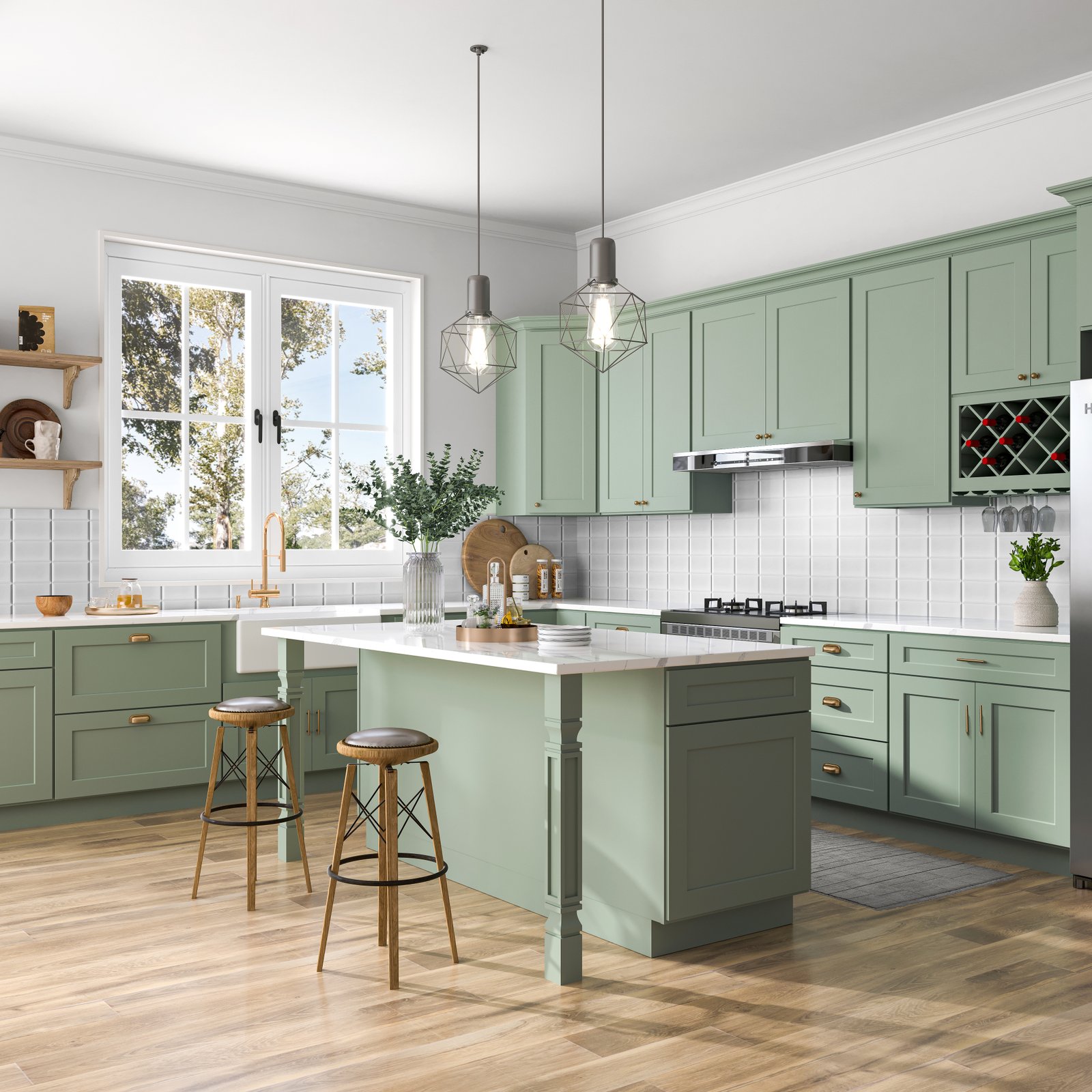 Elegant Sage Green Finish – Soft, earthy tone that adds warmth and sophistication